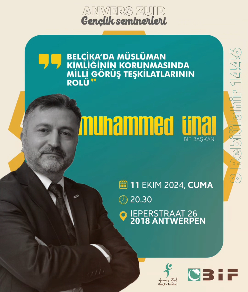 'Belçika’da Müslüman kimliğinin korunmasında Millî Görüş Teşkilatlarının rolü' başlığı altında düzenlenecek Anvers Zuid Gençlik Seminerine sizleri davet ediyoruz.