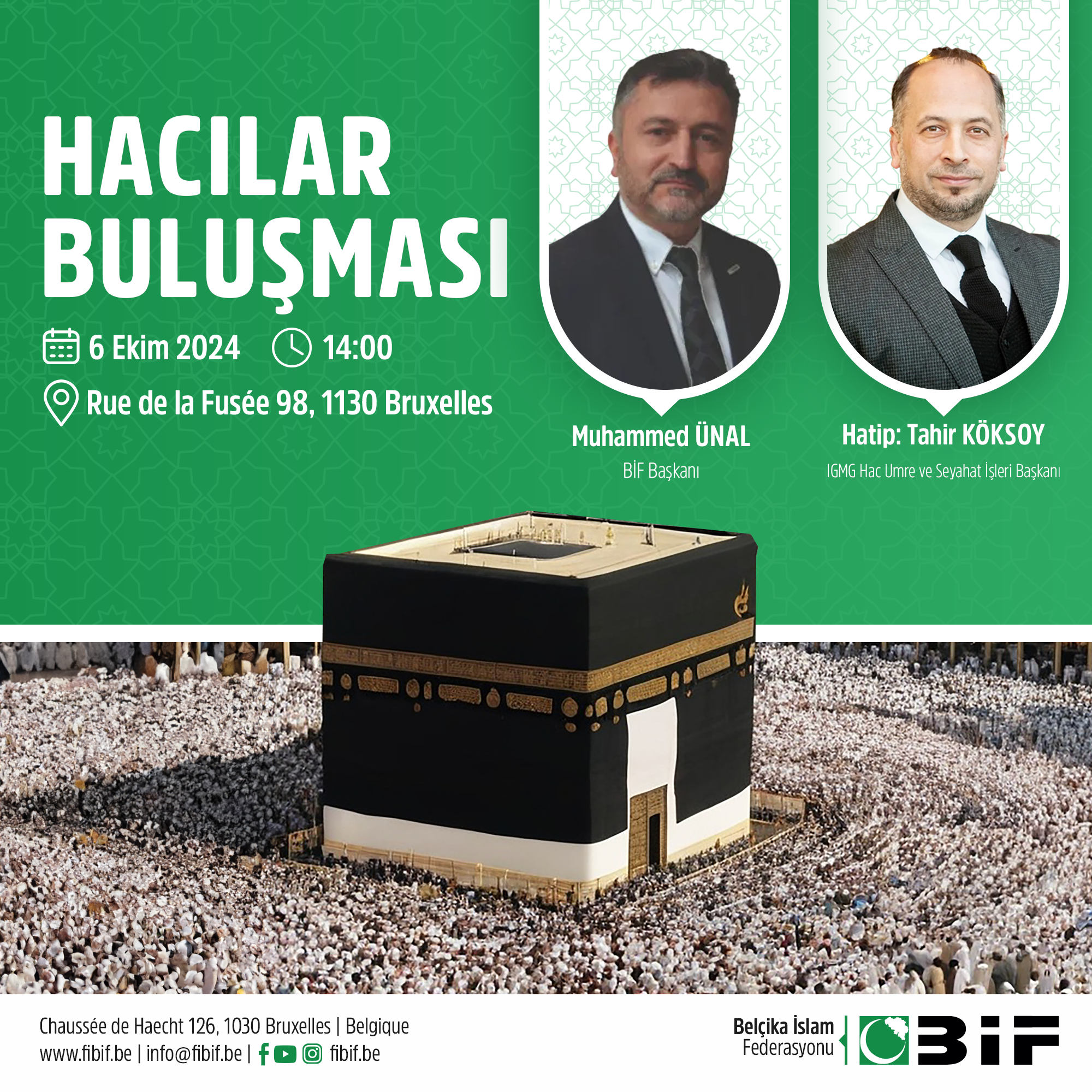 Geçmiş tüm Hac ve Umre organizasyonlarımızda bize eşlik eden değerli misafirlerimizi 6 Ekim Pazar günü, saat 14:00'de gerçekleştireceğimiz "Hacılar Buluşması" etkinliğimize davet ediyoruz. Bu özel buluşmada, kutsal topraklarda yaşadığımız manevi deneyimleri paylaşacak, anılarımızı tazeleyecek ve dostluklarımızı pekiştireceğiz. Sizleri aramızda görmekten mutluluk duyarız.
