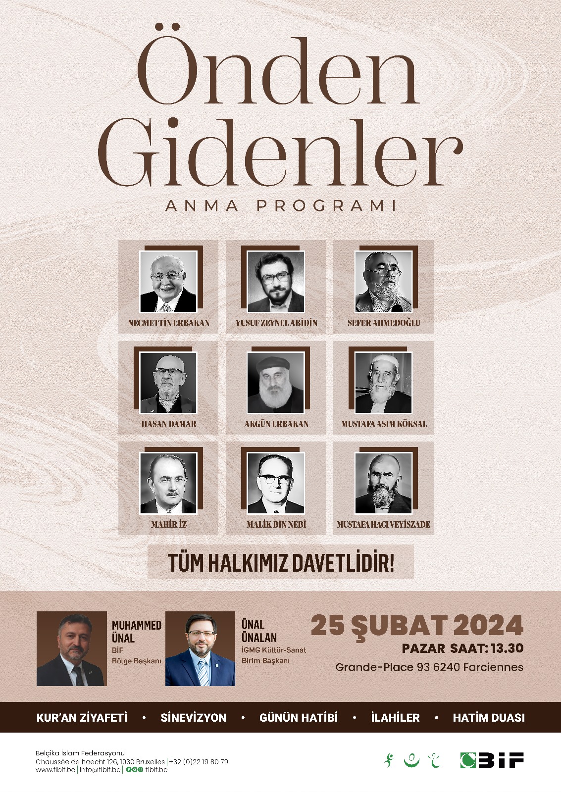 BİF Bölge Başkanımız Muhammed Ünal ve İGMG Kültür-Sanat Birim Başkanımız Ünal Ünalan'ın katılımlarıyla; Kur'an ziyafeti, sinevizyon, ilahiler ve hatim duasının yapılacağı dolu dolu geçecek olan anma programımıza tüm halkımız davetlidir.
